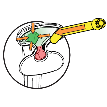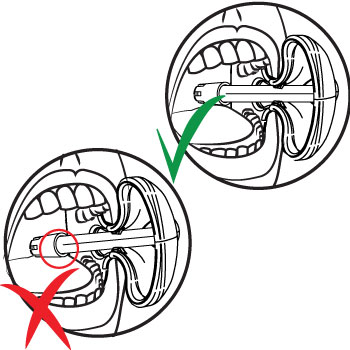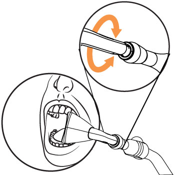 - Step-5: Press the saliva ejector so that it touches the body of the aerosol assist.This position avoids gag reflexes by not touching any gums, teeth or any other anatomical landmarks. It was designed this way to provide a comfortable position for the majority of patients that is effortlessly repeatable.